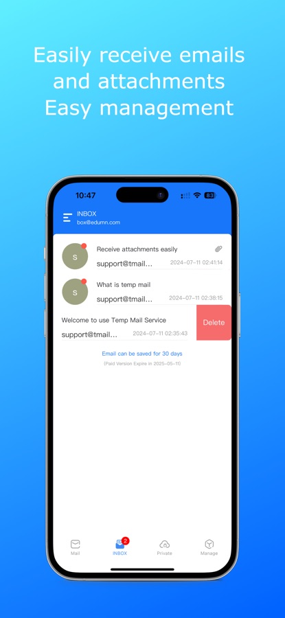 Ordinary mailboxes require user registration, and some even require verification before they can be used. However, simply installing the app generates a new email address, saving time.