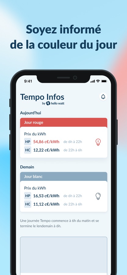 L’application Tempo Infos by Hello Watt vous indique la couleur d’aujourd’hui et de demain.