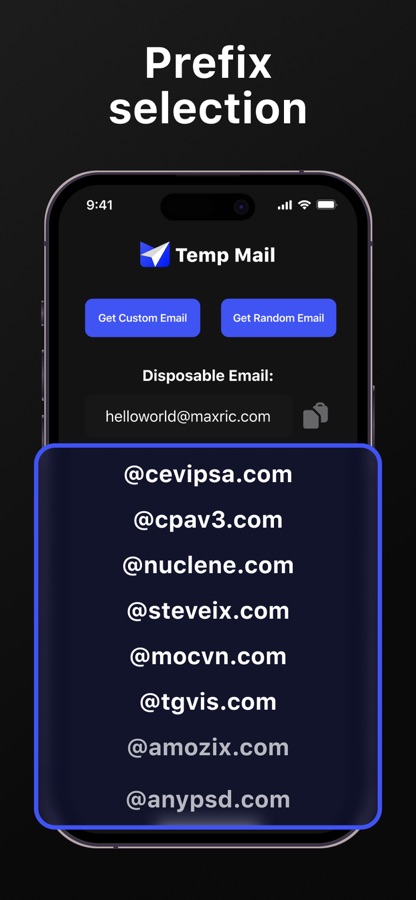 Custom or Random Prefixes: You have the control. Choose to let our app auto-generate a random prefix for your email or tailor your own for a personal touch.