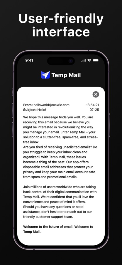 Looking for a way to shield your primary email from the influx of spam, maintain privacy, or simply test an app or service without committing your real email address? Temporary Email is the app for you!