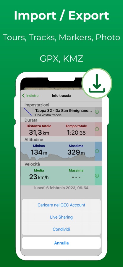 • Easy sharing for markers and routes in various formats
