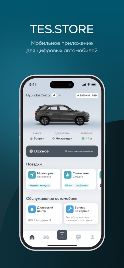 С ТЕС.СТОР вы всегда в курсе технического состояния: общий мониторинг, местоположение авто, история поездок, стиль вождения, текущий заряд аккумулятора, пробег, уровень топлива.