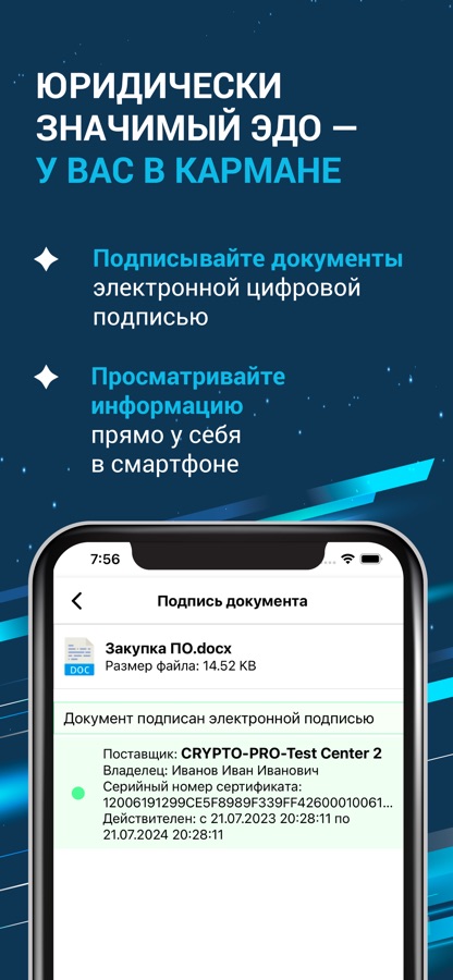 • Подписать документы усиленной квалифицированной электронной подписью (УКЭП)