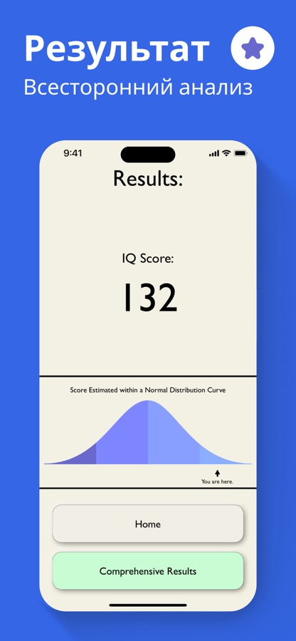 Это приложение для IQ-тестов предлагает короткий тест, который занимает всего 4 минуты. Вы сразу получите числовой результат вашего IQ и узнаете, как он соотносится с нормальным распределением. Кроме того, вы сможете получить подробную обратную связь по правильным и неправильным ответам.