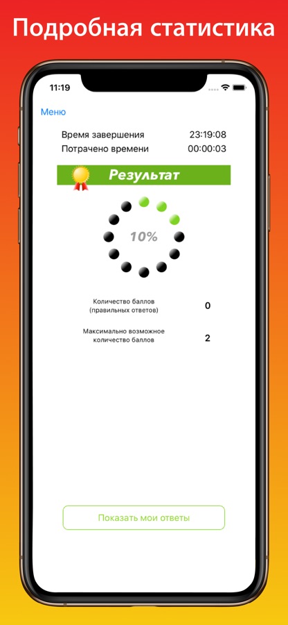 • Работа над ошибками — в режимах «Экзамен», «Марафон» и «Тренировка в избранном» Вы можете сделать работу над ошибками.