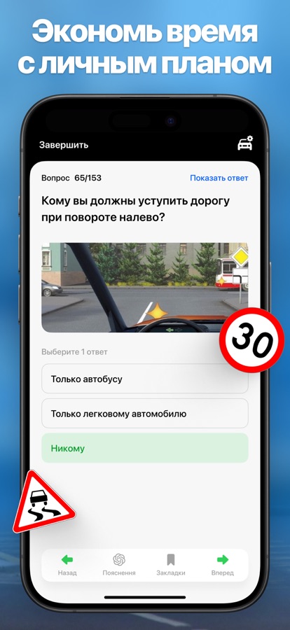 • Доступ к вопросам любой водительской категории.
