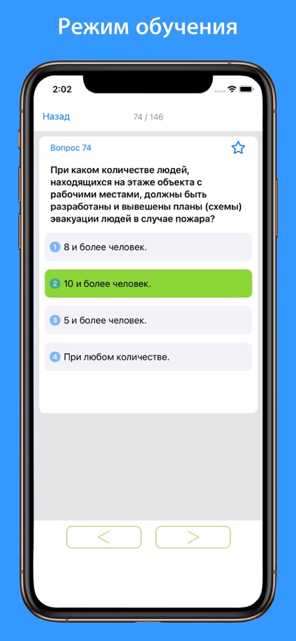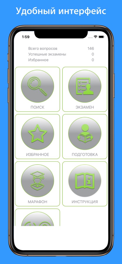 • Подготовка — Позволяет изучить вопросы в текстовом формате с отмеченными правильными ответами;