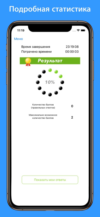 • Работа над ошибками — в режимах «Экзамен», «Марафон» и «Тренировка в избранном» Вы можете сделать работу над ошибками.