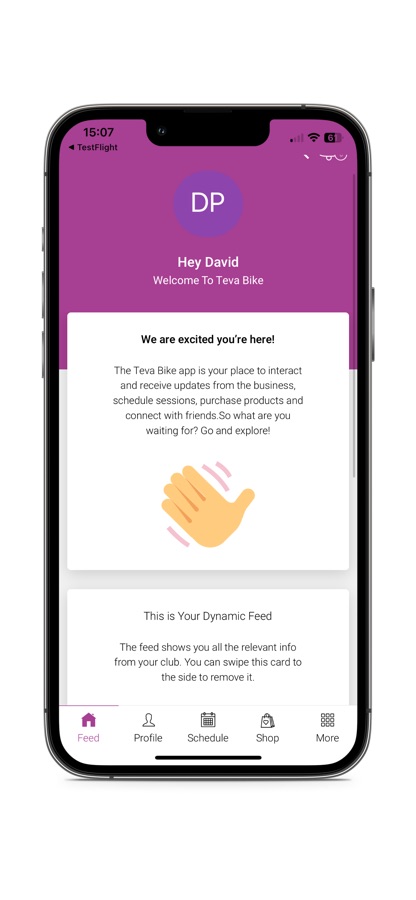 «Welcome to the Teva Bike members app! Download our app to plan and book your fitness classes.