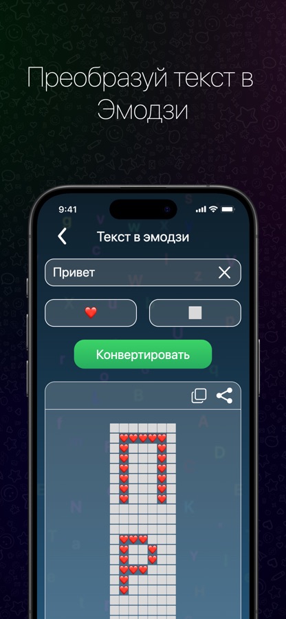 Оживите свои сообщения, превращая обычный текст в веселые и яркие эмодзи! Подчеркните свои эмоции и делитесь позитивом с друзьями.