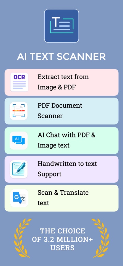 Text Scanner (OCR) is the most accurate AI-powered image to text Scanner app for iOS. It can extract and decipher text from image, photo, screenshot and PDF with 99%+ accuracy in 92 languages, and translate the extracted text into over 100 languages.