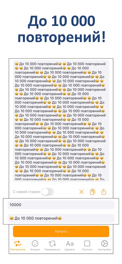 1. Введите текст который требуется повторить в поле для ввода текста;