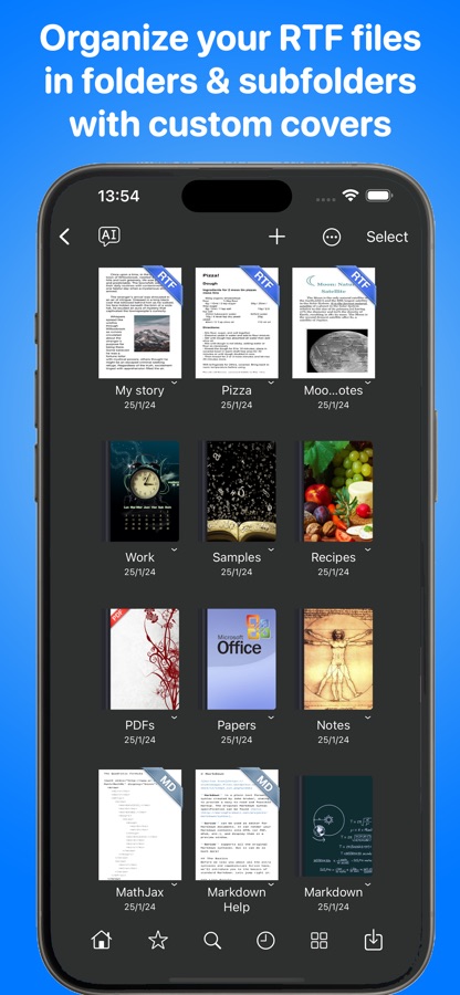 — Открывайте, редактируйте, сохраняйте документы, созданные с помощью сотен текстовых редакторов с поддержкой Rich Text Format файлов (RTF), Markdown, TeX и обычных текстовых файлов (TXT)