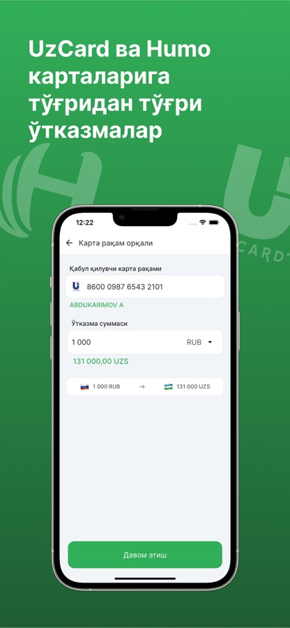 Ассалому Алейкум, Сиз TEZPAY дастури орқали исталган вақтда Ўзбекистондаги барча UzCard ва Humo карталарига пул юборишингиз хамда алоқа операторлари, интернет ва коммунал тўловлар учун пул ўтқаза оласиз.