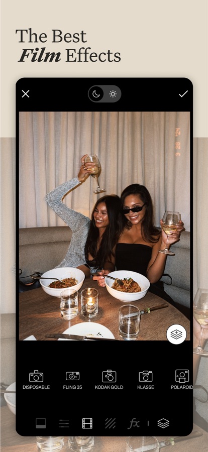 Easily add the perfect filter from 40+ presets made with love by our founder. Ranging in style like vintage vibes, dark and moody, minimal edits, and bright and colorful.