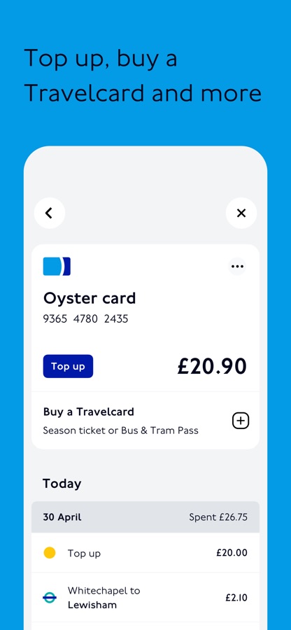 Note: Oyster and contactless accounts can only be accessed within UK/Europe.