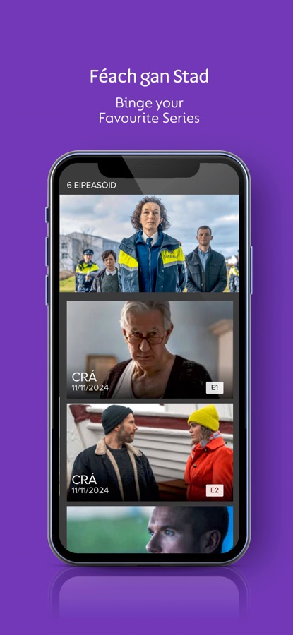 Réimse leathan ábhar — Faisnéis, dráma, spórt, siamsaíocht & ábhar do phaistí ar fáil.