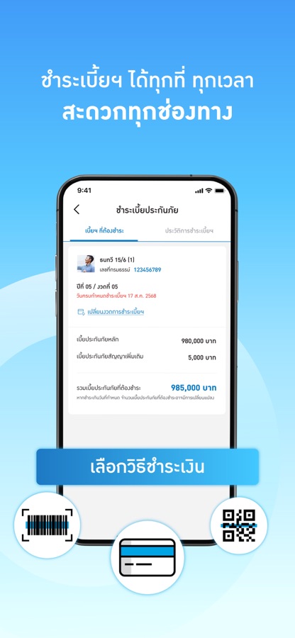 6) แสดงรายการเบี้ยประกันภัยที่ต้องชำระ และประวัติการชำระเงิน