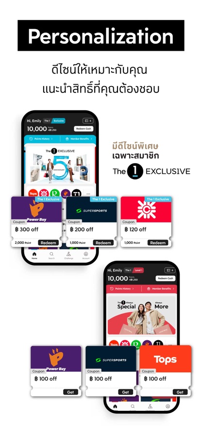 • Redeem your points for discounts at Central Retail stores every day without the need to wait for promotions. Just enter your desired amount, and you’ll get a ready-to-use cash coupon right away.