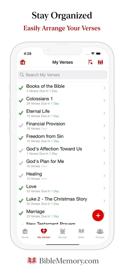The Bible Memory App — единственная полноценная система для запоминания Библии, которая позволяет вам легко ЗАПОМИНАТЬ стихи, ОРГАНИЗОВЫВАТЬ и ПОВТОРЯТЬ их по собственному расписанию. The Bible Memory App — единственная система, доступная на всех мобильных устройствах и в Интернете через сайте BibleMemory.com. Ваш прогресс синхронизируется между всеми устройствами, поэтому учить стихи можно где и когда угодно. Даже без подключения к Интернету!
