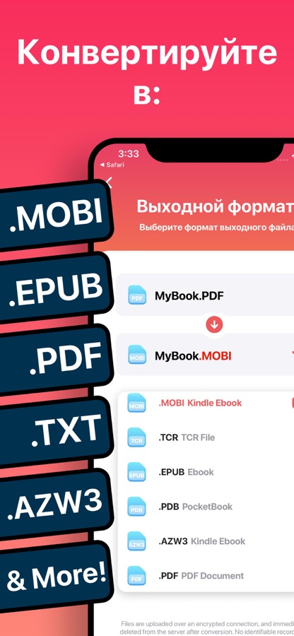 Доступно изменение десятков форматов ввода. Вот некоторые из самых популярных форматов ввода электронных книг, которые мы поддерживаем: EPUB, MOBI, PDF, TXT, FB2, DOCX, AZW3, ZIP, DOC, HTML и другие!