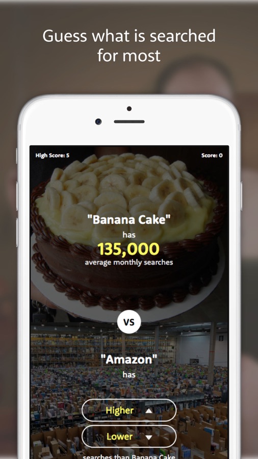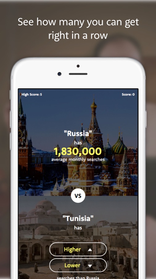It’s easy to play, simply decide which search term has been searched for the most by selecting higher or lower. The objective is to get the most right in a row.