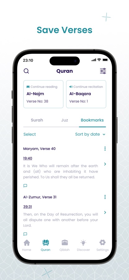Listen to 10 different recitations, including English and Arabic (stream or download for offline mode)