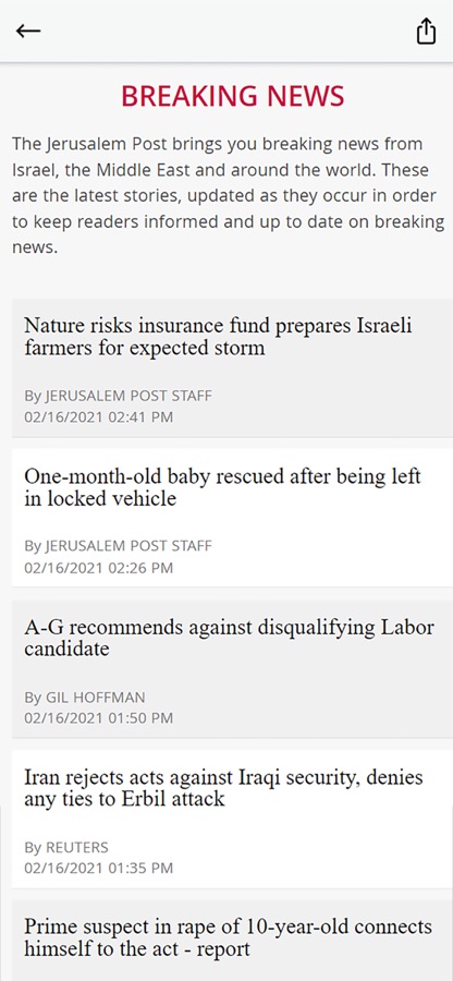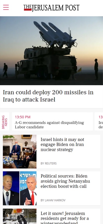 The brand-new Jerusalem Post mobile app is the most comprehensive, accurate, and content-rich source of news from Israel, the Middle East and the Jewish World!