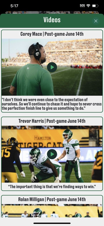 The Rider App is the official mobile app of the Saskatchewan Roughriders. Features include riders schedule, game results results, season statistics, team roster and player information, news articles, video interviews of players and coaches, twitter feed, live streams and more directly on your iPhone and iPad.