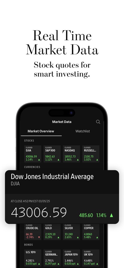 The WSJ App provides comprehensive access that will help you better understand and navigate the complexities of today’s financial world. Regardless of your investing experience, download the app to make more sound financial decisions.