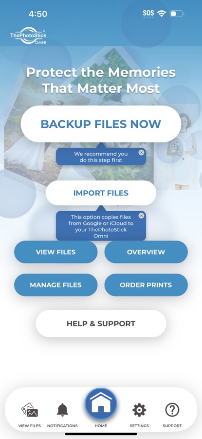 Easily back up your photos, videos, and music files. After backing up to your ThePhotoStick Omni device, easily transfer any of the files to other computer or mobile devices. Restore any files back to your iPhone and/or iPad device as needed too.