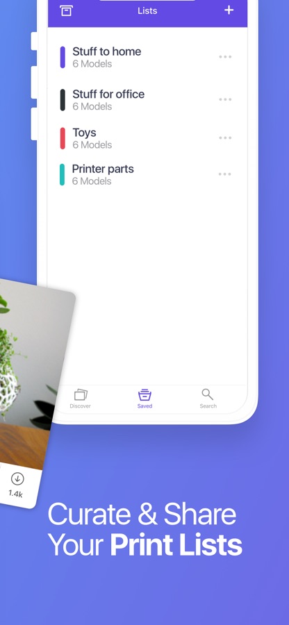 Swipe through over 600K(!!) free, downloadable 3D print models from different marketplaces and curate your 3D print list.