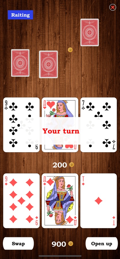 Цель игры набрать 31 очко. Игроки по очереди меняют карты с флопа.