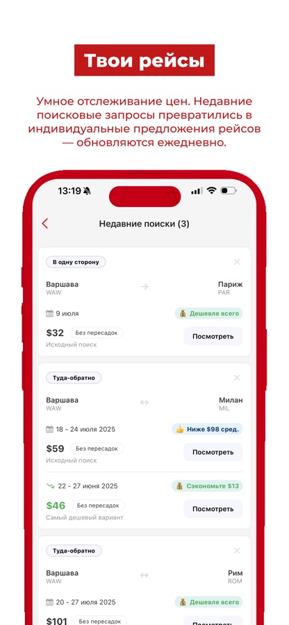 3. Отслеживайте цены в любом сохраненном поиске и бронируйте, когда тариф упадет.