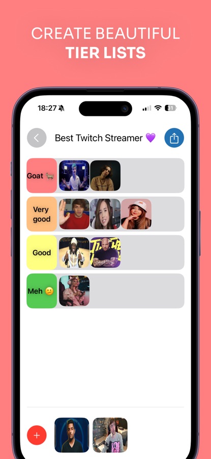 Tier List Creator is the #1 app for creating custom tier lists and share them with anyone, is very simple and intuitive, with a minimalist design