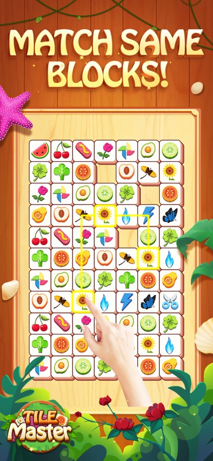 — The new version of Tile Master with simple rules and addictive gameplay: Match pairs of identical fruits or butterfly tiles (choose three of same block), clear all the tiles, Win! Have a blast in Tile Master!