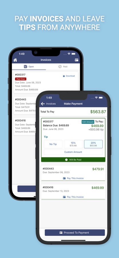 Clients can use the app to view and send messages, update their profile, review and request services and view and pay invoices.