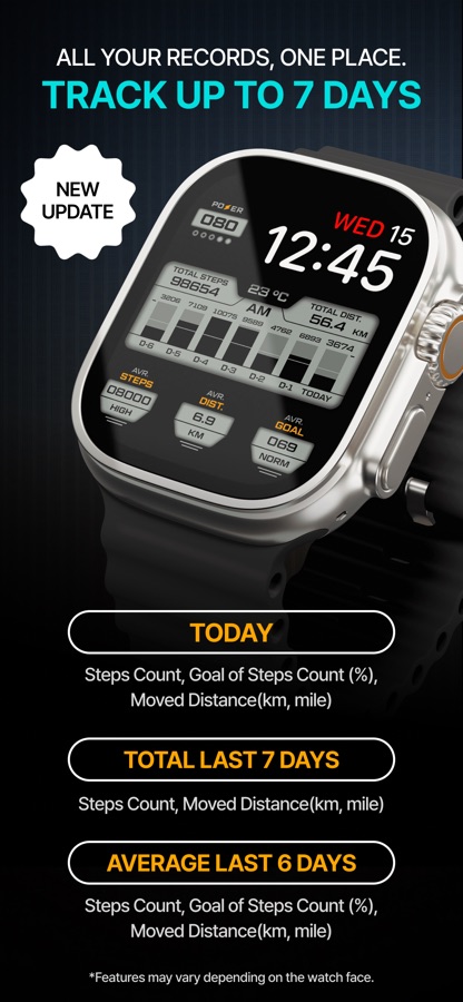 Some watchfaces may display your HealthKit data for steps or distance traveled, heart rate, and more.