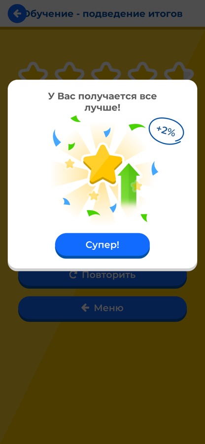 * Приложение подбирает интенсивность обучения, концентрируясь на действиях, которые вызывают больше всего затруднений.