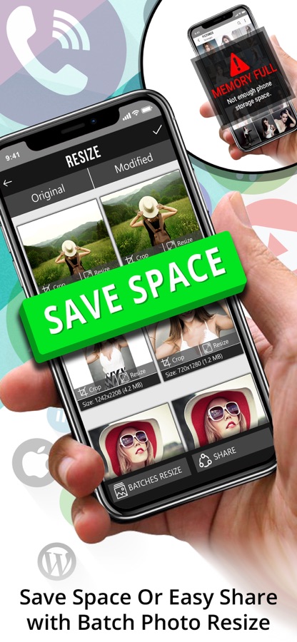 Уменьшить размер, сэкономить место, сжать, вырезать фотографии, обрезать фотографии и делиться фотографиями в одно мгновение. Попробуй!!