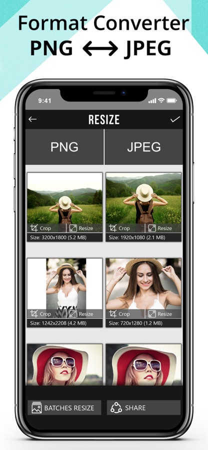 TinyPhoto Photo Resizer / Compress / Converter: поставляется с пакетной функцией, где вы можете изменять размер сразу нескольких изображений и делиться ими со всеми размерами изображений непосредственно из приложения.