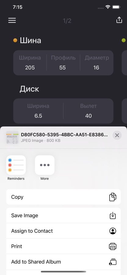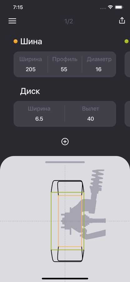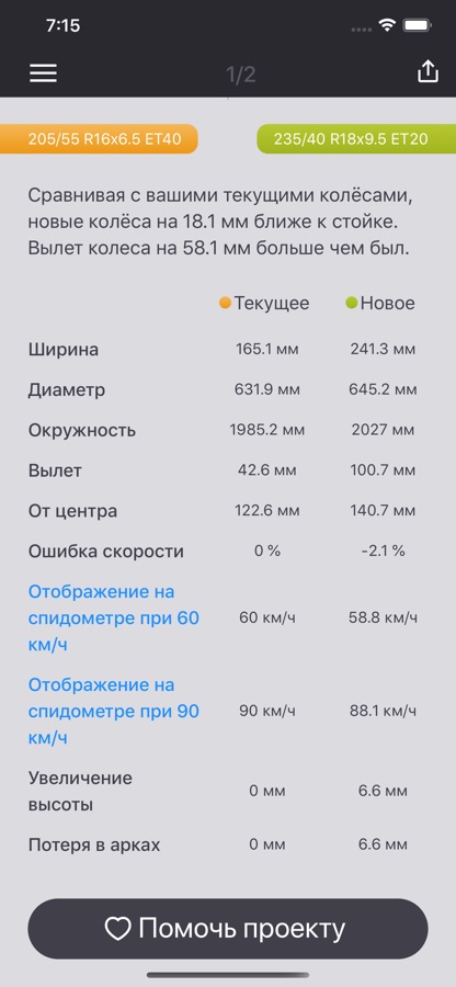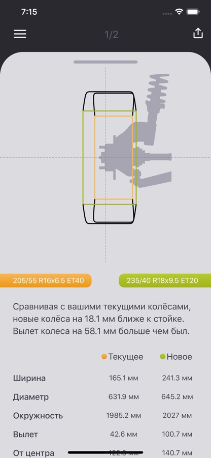 • Возможность сравнивать несколько колёс