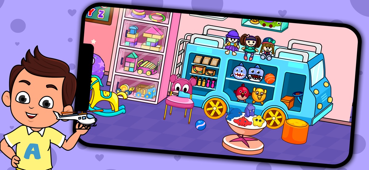 * Играйте с забавными детскими персонажами.