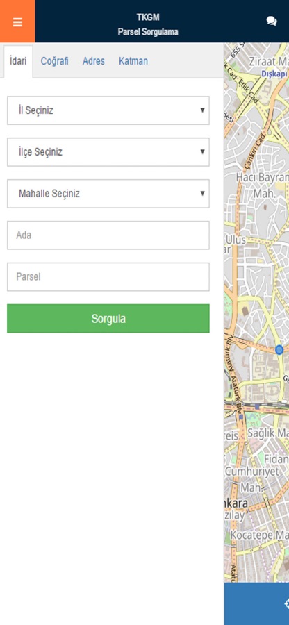 • İdari Sorgu( İl, İlçe, Mahalle, Ada, Parsel hiyerarşisi içerisinde)