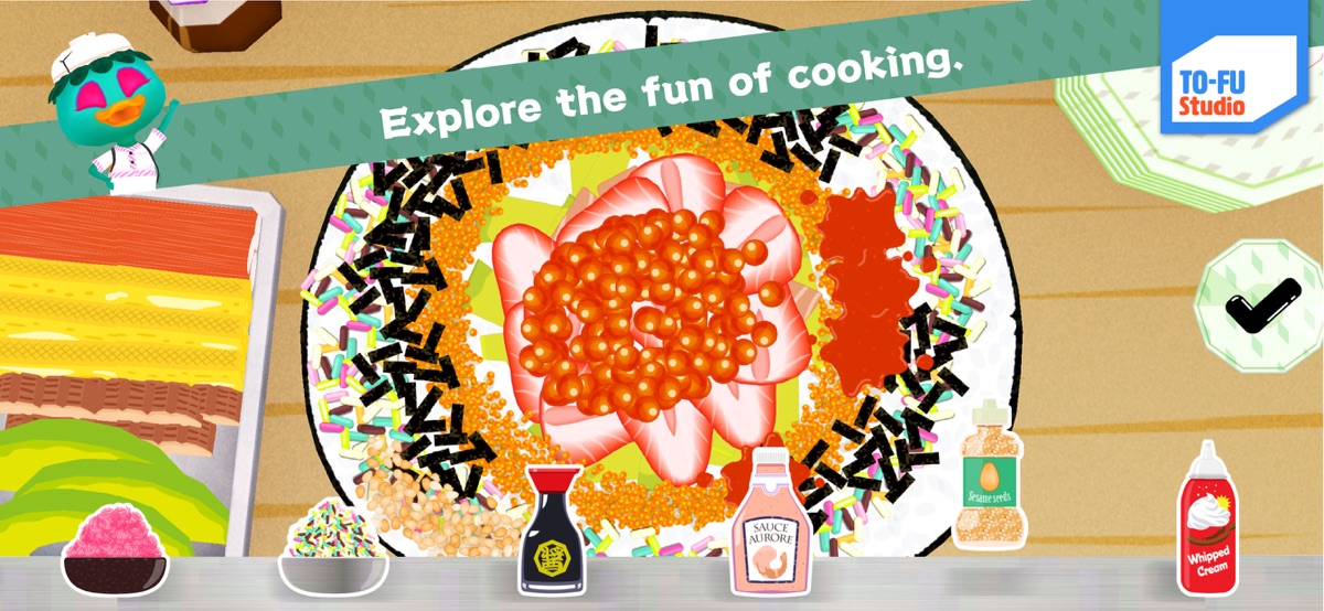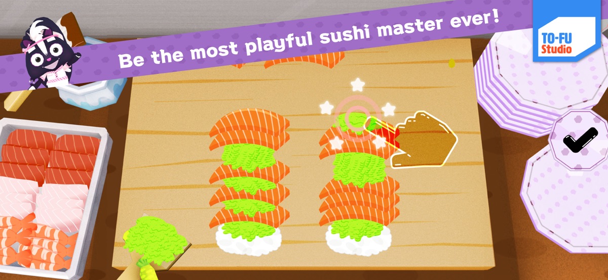 This app is designed to allow children to be creative by decorating their original sushi.