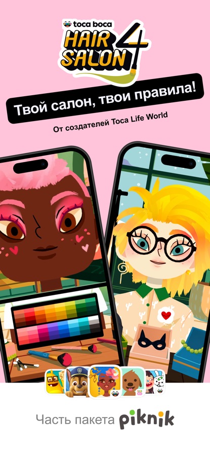Toca Boca Hair Salon 4 теперь входит в Piknik — одна подписка, бесконечные способы играть и учиться! Получи полный доступ к лучшим в мире приложениям для дошкольников от Toca Boca, Sago Mini и Originator с безлимитным планом.