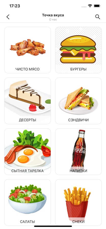 — Меню. Смотри актуальные цены, описание и красочные фото блюд. Узнай точный размер порций. Больше не считай калорий — это уже сделали за тебя. А еще мы указали все аллергены на случай, если это важно. Все здесь. И всегда под рукой. Точка Вкуса — это удобно.