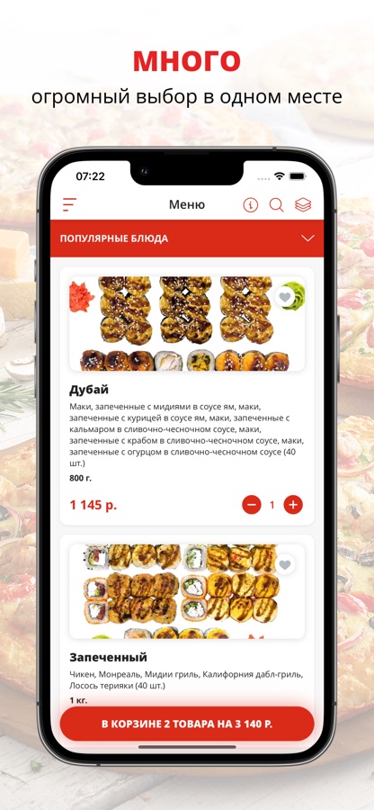 Скачивайте наше приложение, оформляйте заказ и наслаждайтесь любимой едой, где бы Вы ни были! Приятного аппетита!