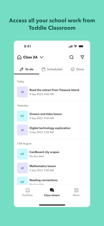 Through the Toddle Student App, you can: