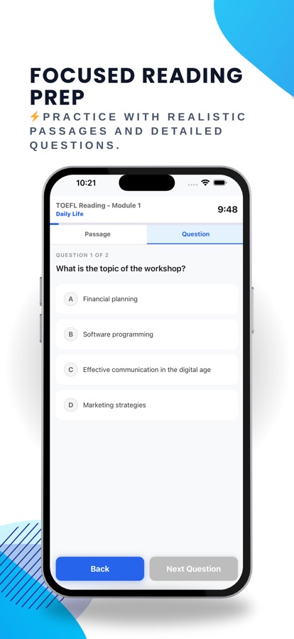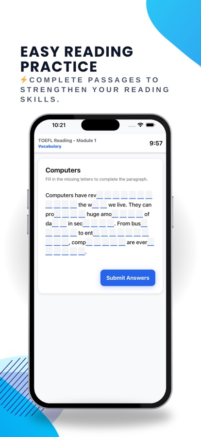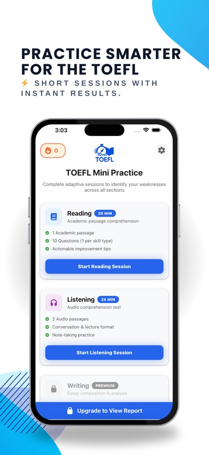 TOEFL is a registered trademark of ETS. This app is not affiliated with or endorsed by ETS.